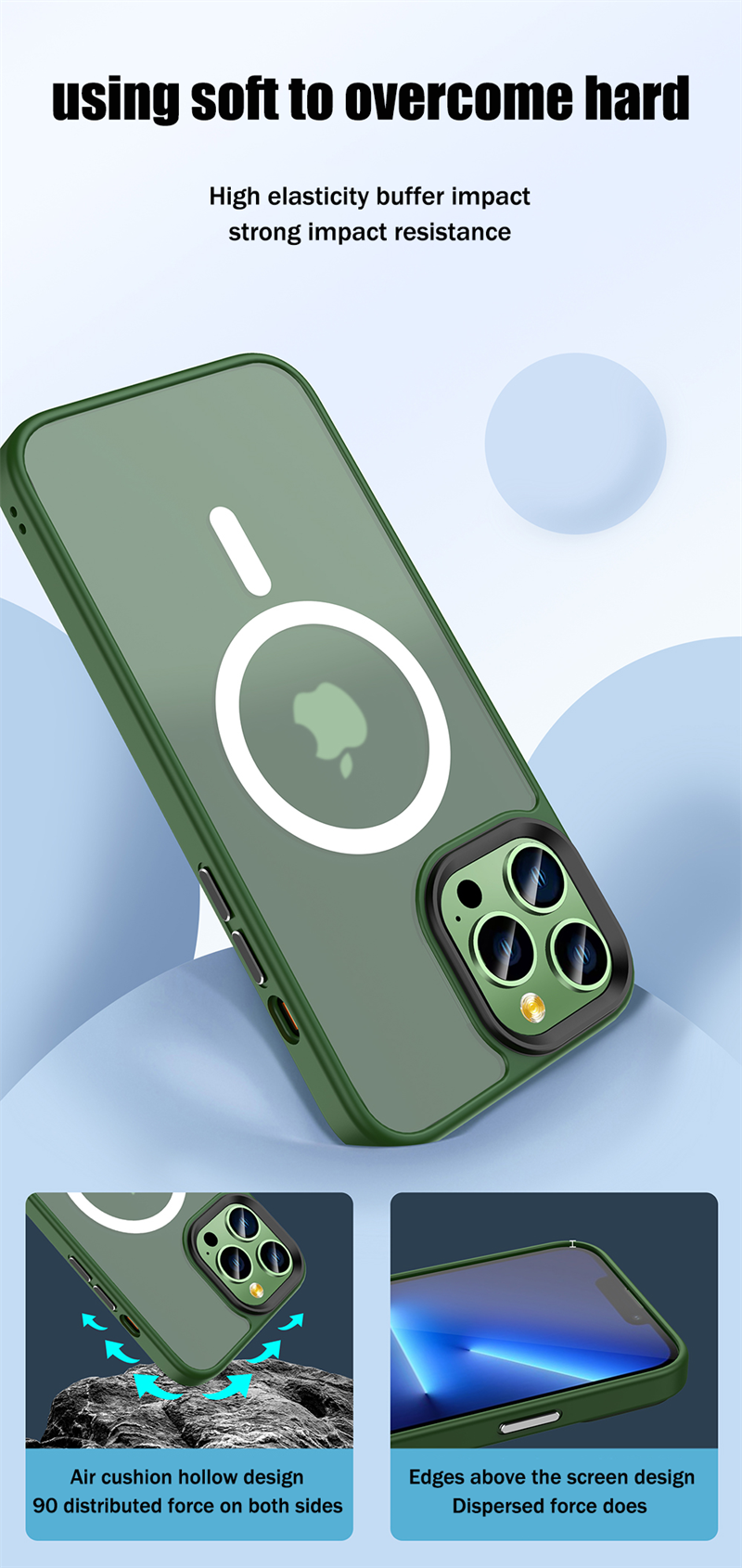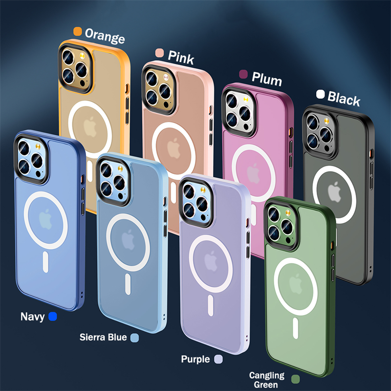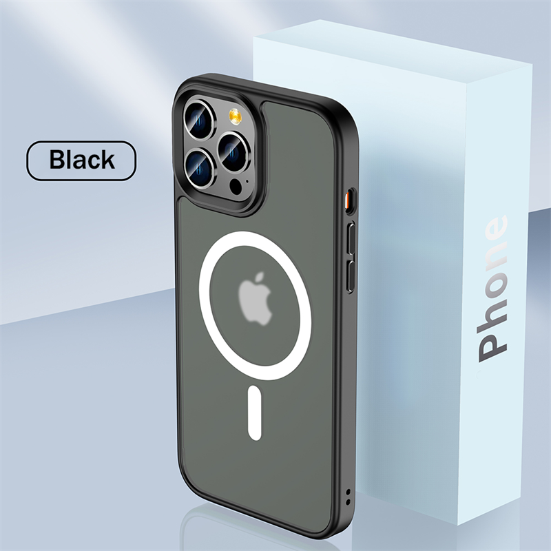 高品质半透明哑光磁性手机壳适用于iPhone 12 13 14 Pro Max 14 Plus防震硅胶边缘软保护外壳豪华保险杠哑光硬后盖
