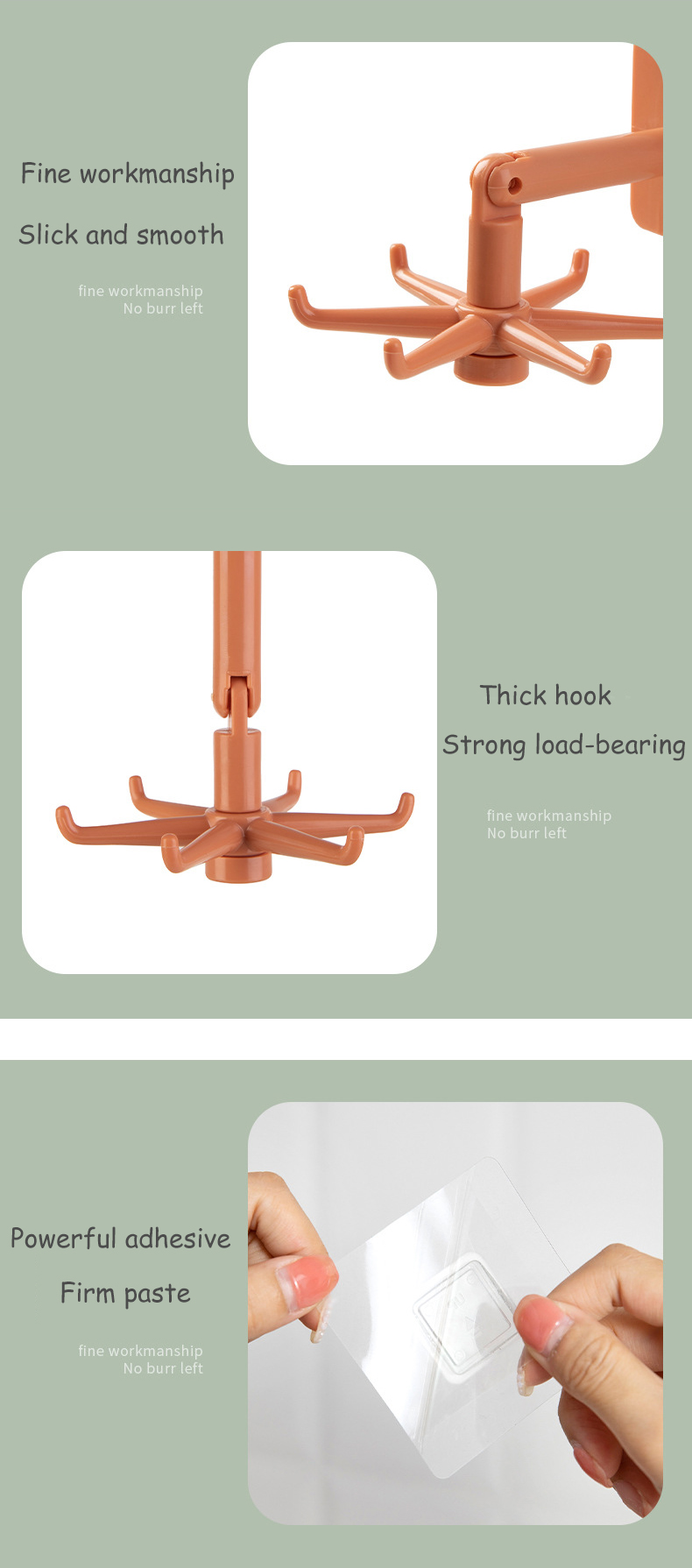 Homy 360°可旋转6钩衣架厨房小钩壁挂式挂钩自吸式厨房浴室挂钩架可调节多功能厨房挂钩